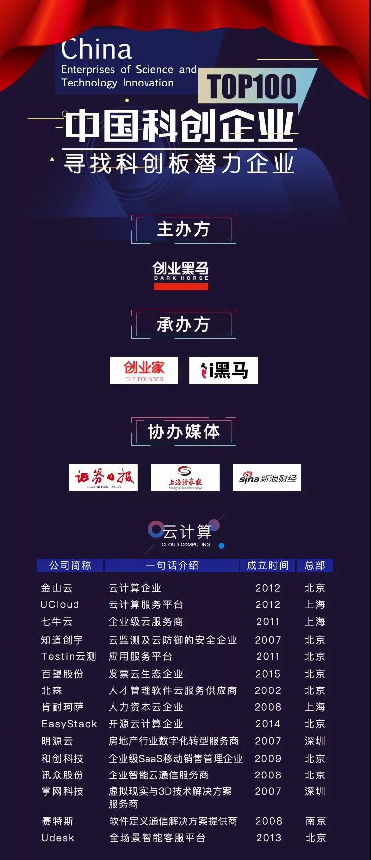 云計(jì)算領(lǐng)域入選企業(yè)名單