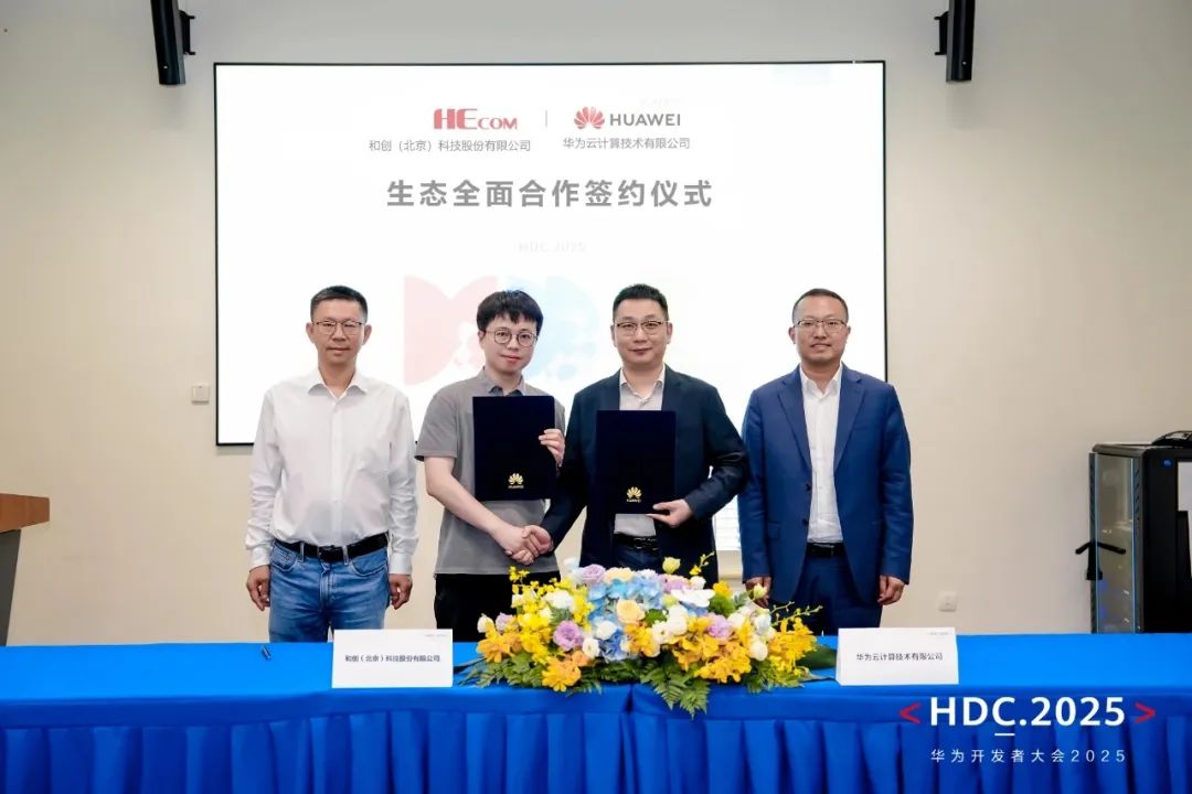 在2025華為開發(fā)者大會期間,和創(chuàng)(北京)科技股份有限公司(以下簡稱“和創(chuàng)科技”)與華為云計(jì)算技術(shù)有限公司(以下簡稱“華為云”)簽署生態(tài)全面合作協(xié)議,雙方將在聯(lián)合解決方案構(gòu)建、AI應(yīng)用開發(fā)及行業(yè)大模型共創(chuàng)等領(lǐng)域展開全方位合作,共同推動新一代人工智能產(chǎn)品在工程行業(yè)的應(yīng)用落地。在和創(chuàng)科技CEO劉學(xué)臣、華為云生態(tài)發(fā)展與運(yùn)營部部長陶志強(qiáng)的共同見證下,和創(chuàng)科技副總裁王禹、華為云北京云生態(tài)發(fā)展與運(yùn)營部部長代表雙方完成簽約。