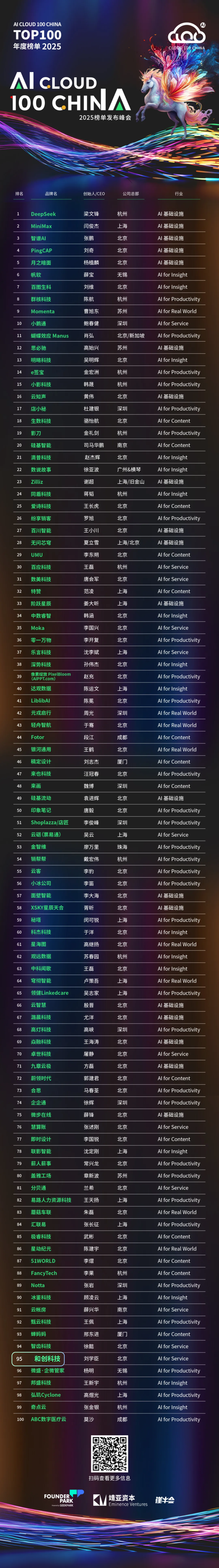 紅圈新聞?|?2025?AI?Cloud?100?China?榜單揭曉:和創(chuàng)科技三度登榜!