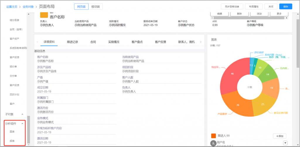 在數(shù)據(jù)資料的詳情頁面上,可以查看相關(guān)對象的報表。實現(xiàn)以當(dāng)前數(shù)據(jù)為中心,360度視圖輕松查看分析全貌