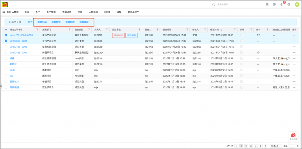 - 列表頁批量按鈕支持執(zhí)行鎖定和解鎖動作:列表頁批量按鈕支持執(zhí)行動作,可以執(zhí)行鎖定和解鎖動作,在前端實現(xiàn)批量鎖定和批量解鎖