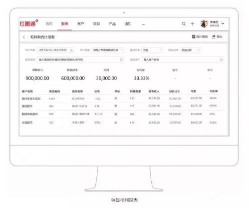 為幫助企業(yè)清晰地獲知銷售收入與利潤、做出更合適的業(yè)務(wù)決策,紅圈通進(jìn)銷存提供了銷售毛利報表、訂退單報表、商品銷售報表、客戶訂貨報表、區(qū)域銷售報表等五大類報表,從訂單變動趨勢、商品、客戶、區(qū)域等多個角度進(jìn)行數(shù)據(jù)分析統(tǒng)計。通過報表,企業(yè)可實(shí)時掌控銷售現(xiàn)狀、獲知市場布局,進(jìn)而優(yōu)化資源投放。