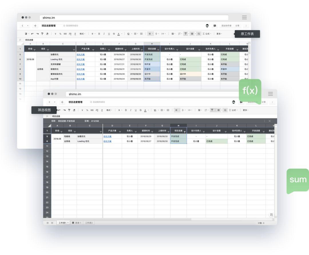 石墨表格,完美兼容本地 Excel 文件,導(dǎo)入導(dǎo)出流暢無損,無格式混亂;提供的 6 大函數(shù)類別,400+公式,基本可以覆蓋 90%主流辦公軟件;支持單元格鎖定,可根據(jù)不同協(xié)作者開放不同層級的查看/編輯權(quán)限;支持篩選視圖,協(xié)作者可獨立篩選數(shù)據(jù)而不互相干擾。
