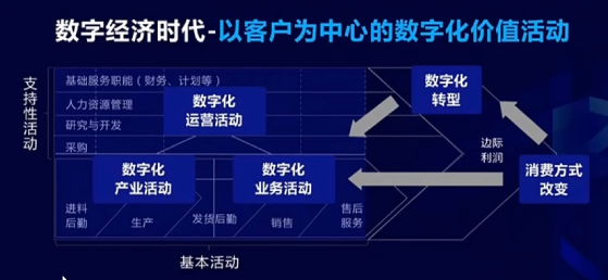 數(shù)字時代的來臨帶來的最大變化是什么?支持性活動可以產生價值,基本活動也可以產生價值,整個上下游還是可以產生價值。最后發(fā)現(xiàn)我們產生價值的空間變多了。原來只在一條鏈上,而且這條鏈上只有基本活動產生價值,其他只是改變成本和價值。可是數(shù)字技術來了之后,所有的環(huán)節(jié)都可以產生價值,無論是支持活動、基本活動,還是上下游的產業(yè)活動。我們告訴各位,這是源于消費方式的改變。
