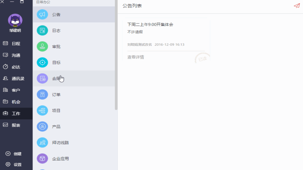 紅圈CRM「工作日志」展示: