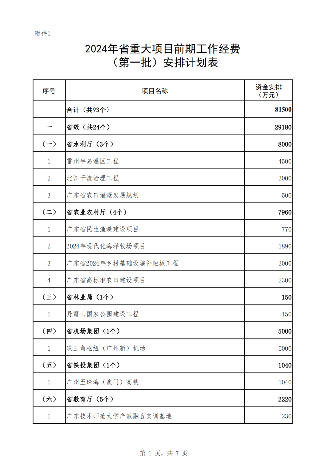 廣東省2024年省重大項目前期工作經(jīng)費(fèi)安排計劃(第一批)公示