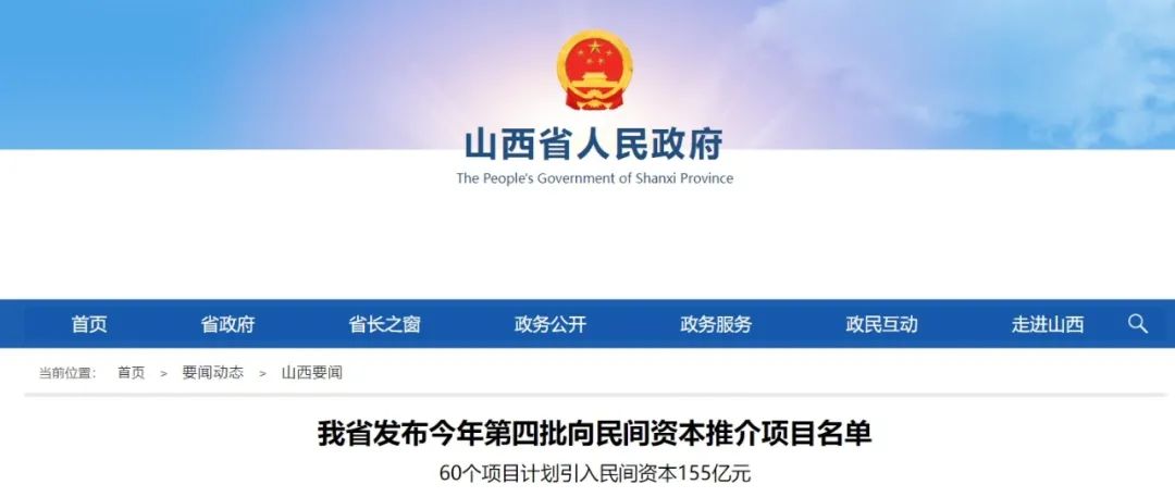 行業(yè)政策?|?總投資308億元!山西公布新一批向民間資本推介項目!