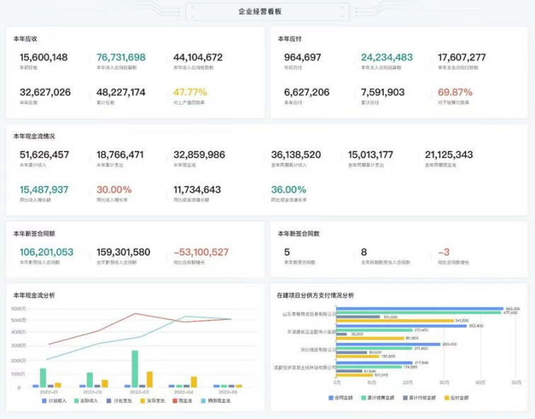 更關(guān)鍵的是 “數(shù)據(jù)穿透” 能力:管理層可以從總部層面,穿透到分子公司,再下鉆到具體項(xiàng)目,實(shí)時(shí)查看進(jìn)度、成本、資金等維度的動(dòng)態(tài) —— 比如總部能實(shí)時(shí)掌握所有項(xiàng)目的現(xiàn)金流情況,分子公司能監(jiān)控下轄項(xiàng)目的分供方付款進(jìn)度,項(xiàng)目端能追溯每一筆成本的來源。這種 “總部 - 分子公司 - 項(xiàng)目” 三級(jí)透明化管理,不僅滿足了央企國企對 “運(yùn)營透明度”“集團(tuán)化管控” 的嚴(yán)格要求,還能為審計(jì)合規(guī)、重大決策提供可信的數(shù)據(jù)依據(jù),完美契合 “強(qiáng)總部、精項(xiàng)目” 的管理導(dǎo)向。