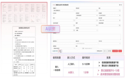 單據錄入: 材料員每天要處理大量送貨單、混凝土小票,手動錄入既耗時又易錯?!癆I錄單助手” 就像一個超級 “智能掃描儀”。無論面對手寫單、機打單還是污損的票據,用手機拍照上傳,AI便能自動識別單據上的物料名稱、規格、數量等關鍵信息,并填入系統。原本需要20-30分鐘錄入的5張單據,現在3-5分鐘即可完成,效率提升顯著。
