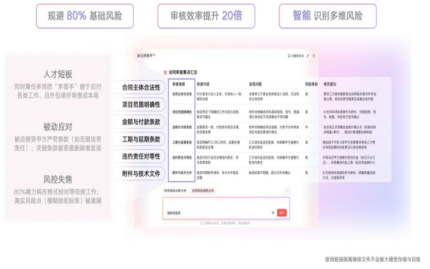 AI業(yè)務(wù)助手就能在這里大顯身手。通過(guò)大模型快速理解合同文本,自動(dòng)標(biāo)出關(guān)鍵的風(fēng)險(xiǎn)點(diǎn)、權(quán)責(zé)不對(duì)等的條款,并給出修改建議。這相當(dāng)于讓法務(wù)人員可以集中精力攻克最核心、最復(fù)雜的法律問(wèn)題,審核效率和質(zhì)量都能獲得提升。紅圈AI的介入,讓管理流程不僅自動(dòng)化,更實(shí)現(xiàn)了智能化升級(jí)。